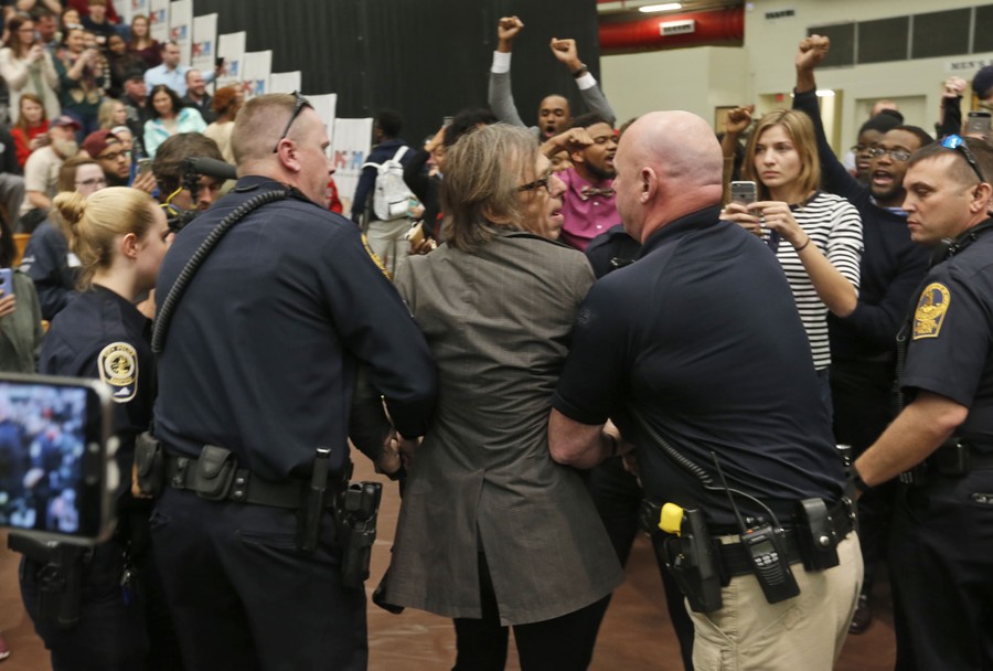 Read moreJournalist Christopher Morris is arrested by police during a rally for Republican presidential candidate, Donald Trump, at Radford University in Radford, Virginia, on February 29, 2016. #