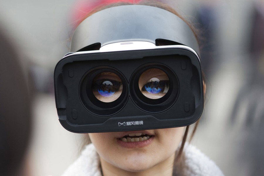Read moreA journalist wears virtual reality headgear outside the Great Hall of the People where the opening session of the Chinese People's Political Consultative Conference (CPPCC) was held in Beijing, China, on March 3, 2016. #