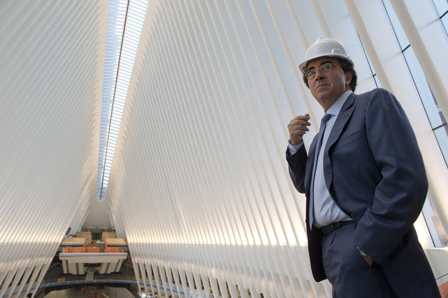 Read moreSpanish-born architect Santiago Calatrava poses for a portrait during a media tour of the World Trade Center transportation hub in New York City on February 25, 2016. The soaring, white transportation hub opening next week at the World Trade Center was designed to evoke a bird in flight, but it is hatching under a cloud. The head of the bi-state agency that controls the hub has blasted it as a “symbol of excess,” with runaway costs approaching $4 billion. #