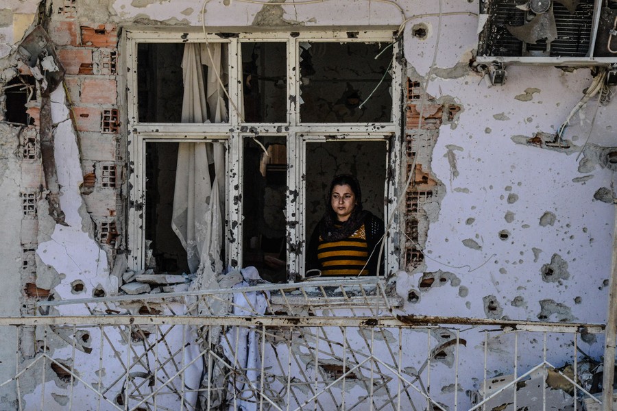 Read moreA woman looks through a window of her ruined house on March 8, 2016, in Cizre district, Turkey. Residents of Cizre in southeastern Turkey began returning home Wednesday after authorities partially lifted a curfew in place since December for a controversial operation against Kurdish rebels, which left many homes destroyed. #