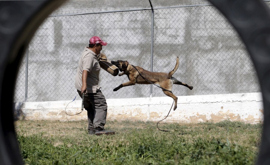 Read moreA dog trainer works with a previously abandoned dog at a police center in Saltillo, Mexico, on March 4, 2016. Stray dogs are adopted by the police from a municipal anti-rabies center and then trained to help the police patrol the streets, and search for drugs, explosives, and weapons. #
