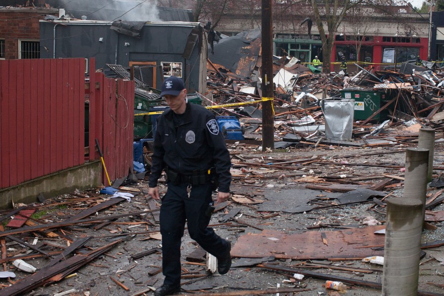 Read moreA natural gas explosion destroyed businesses on Greenwood Avenue during the early morning hours on March 9, 2015, in Seattle, Washington. Nine firefighters who were battling the blaze were injured, but have since been released from Harborview Medical Center according to Seattle Fire Department. #