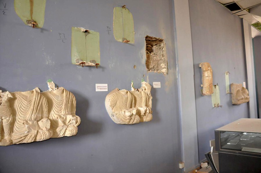 Read moreThis photo released on March 28, 2016, by the Syrian official news agency SANA, shows destroyed statues and evidence of stolen items inside the damaged Palmyra Museum. #