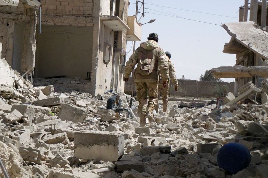 Read moreSyrian troops walk in the destroyed streets of the residential neighbourhoods in the modern town adjacent to the ancient Syrian city of Palmyra after they recaptured the UNESCO site from ISIS on March 27, 2016. #