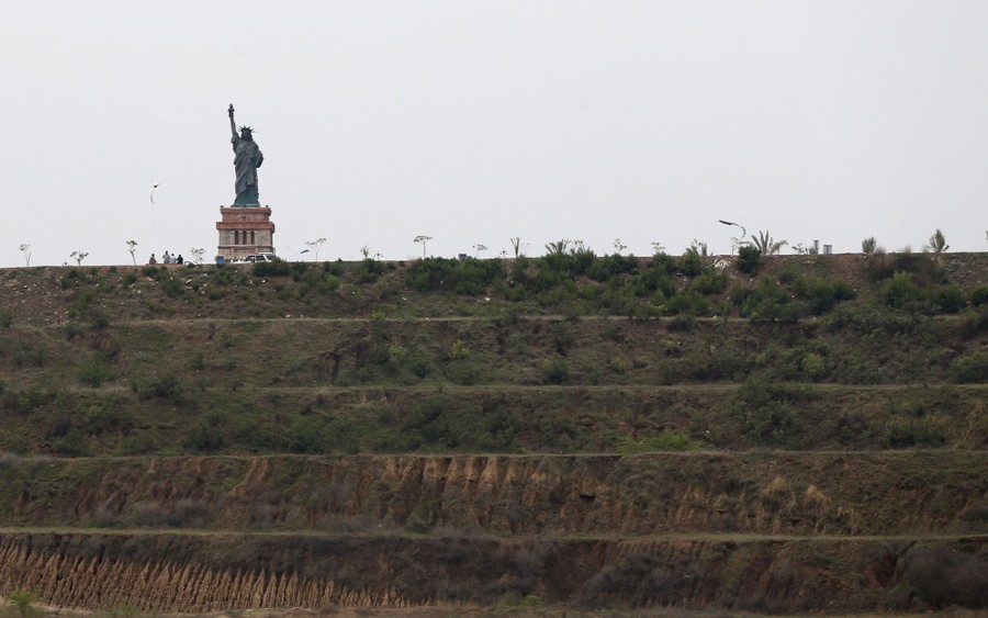 Read moreA replica of the Statue of Liberty stands on a hill overlooking the construction of new homes in Bahria Town on the outskirts of Islamabad, Pakistan, on March 16, 2016. #