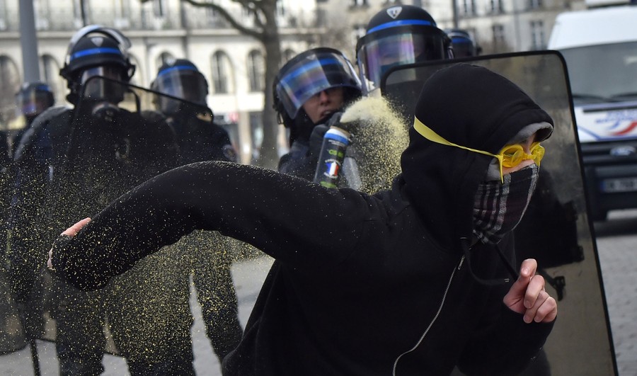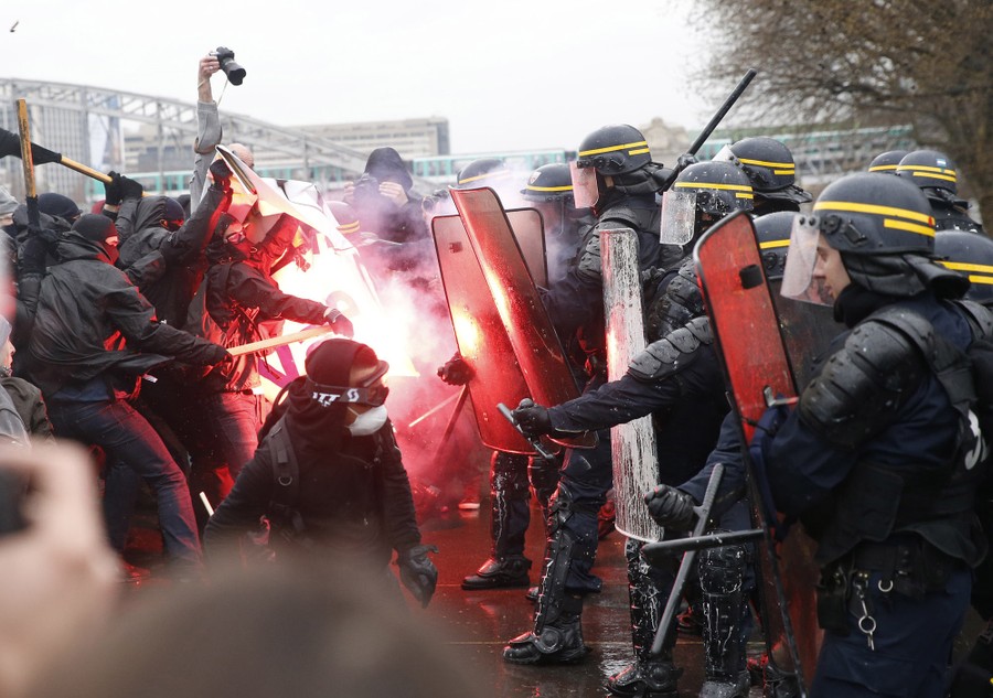 Read moreFrench riot police clash with protesters demonstrating against labor law reforms close to the Gare de Lyon train station in Paris on March 31, 2016. France faced fresh protests over labour reforms just a day after the beleaguered government of President Francois Hollande was forced into an embarrassing U-turn over constitutional changes. #