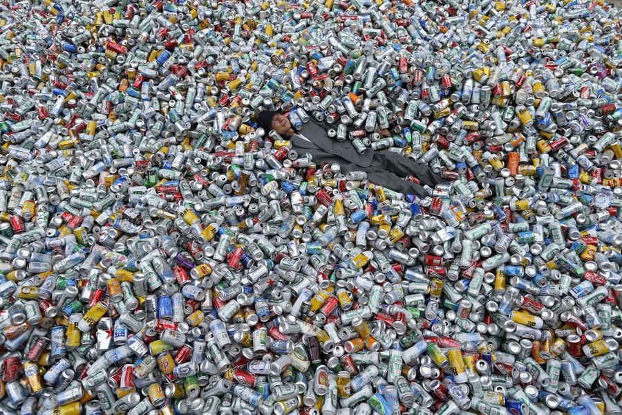 Read moreThe artist Chin Chih Yang poses after his performance “Kill Me or Change” with 30,000 cans falling and burying the artist underneath a mountain of garbage, at the Museum of Contemporary Art in Taipei, Taiwan, on April 23, 2016. #