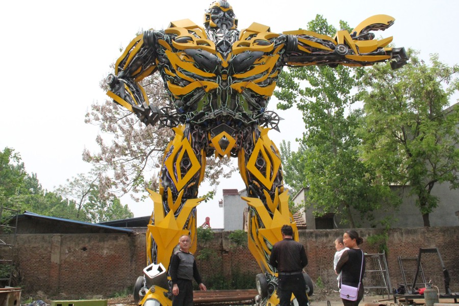 Read morePeople look at a replica of a “Transformer,” made by a fan, in Shangqiu, Henan Province, China, on April 22, 2016. According to local media, the owner took a year to build the replica, which is made of vehicle components and weighted about 17 tons. #