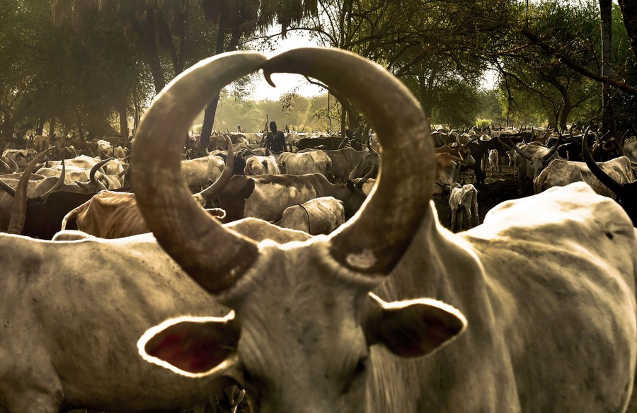 Read moreA Dinka girl stands at a cattle camp in Toch, Warrap state, in South Sudan on April 24, 2016. The camp houses over 10,000 Ankoli longhorn cattle and is supported by Veterinaires Sans Frontieres-Germany which helps the farmers with medicine and vaccines. #