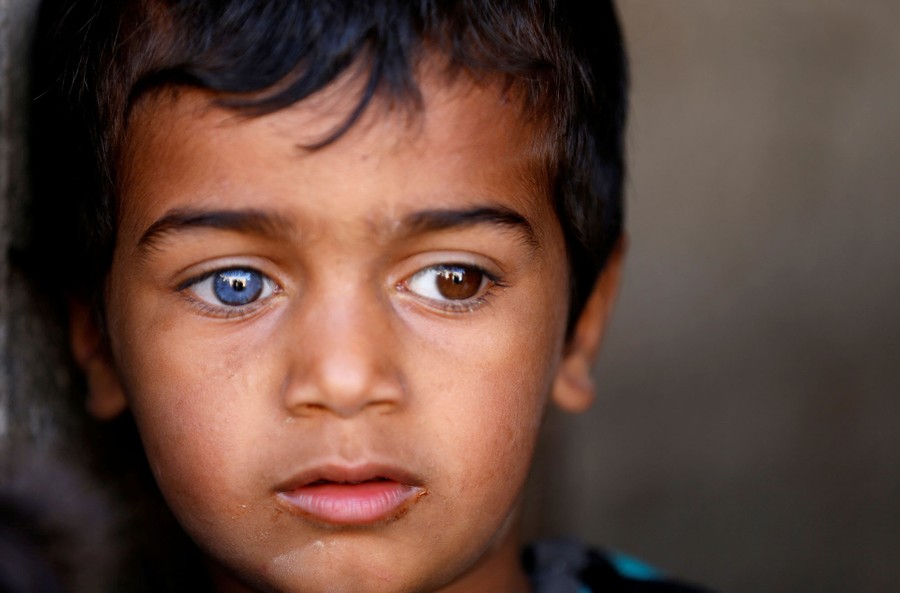 Read moreA boy with differently colored eyes waits in the doorway of his family's house during a house-to-house anti-polio vaccination campaign in Yemen's capital of Sanaa on April 12, 2016. #