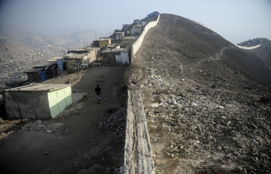 Read morePicture of the so-called ‘Wall of Shame’ in the outskirts of Lima, Peru, on April 8, 2016. The place began to be populated 20 years ago, with migration of Andean people displaced by poverty and violence of the guerrillas from the countryside to the city. The 10-kilometer-long wall separates dusty huts without electricity or water from mansions with swimming pools and green areas. #