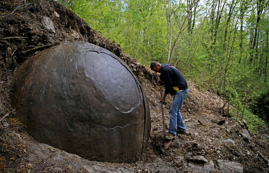 Read moreSuad Keserovic cleans a stone ball in Podubravlje village near Zavidovici, Bosnia, and Herzegovina, on April 11, 2016. Keserovic claimed that the stone sphere is 3.3 meters in diameter and the estimated weight of it is about 35 tons. Hundreds of tourists from around the world have visited this stone. #
