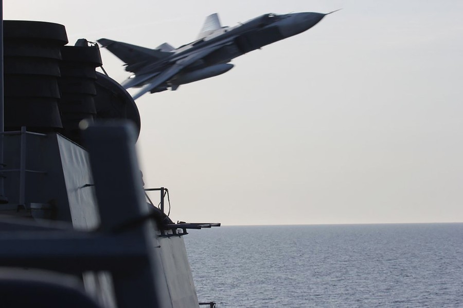 Read moreA U.S. Navy picture shows what appears to be a Russian Sukhoi SU-24 attack aircraft making a very low pass close to the U.S. guided missile destroyer USS Donald Cook in the Baltic Sea in this picture taken April 12, 2016, and released April 13, 2016. Two Russian warplanes with no visible weaponry flew near the destroyer in what one U.S. official described as one of the most aggressive interactions in recent memory. #