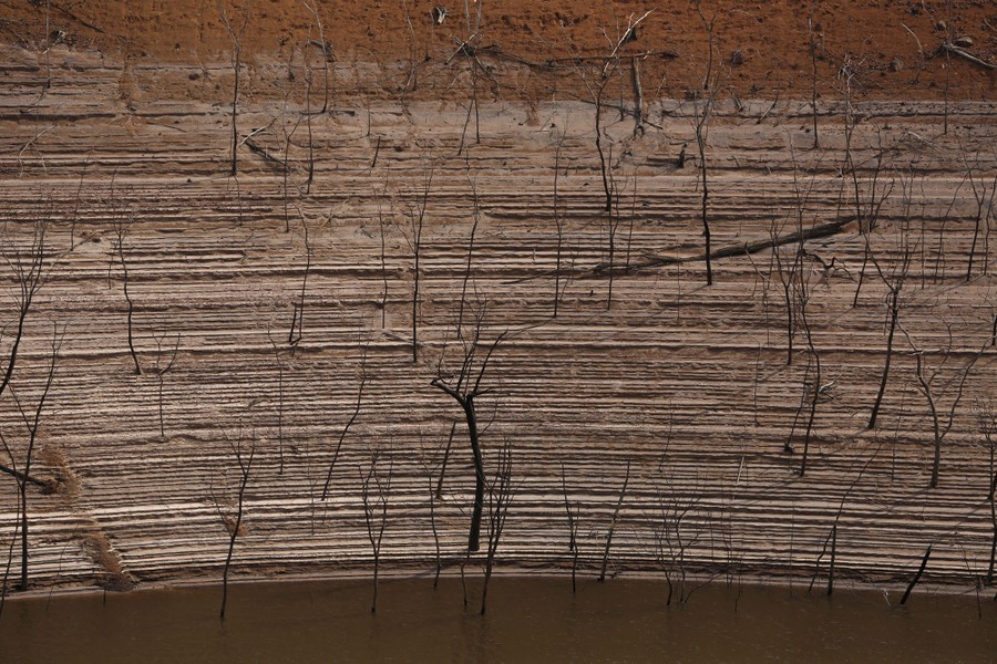 Read moreTrees and high-water marks on previously-submerged land behind Guri dam in Bolivar state, Venezuela, on April 11, 2016. Drought has turned parts of the reservoir behind Venezuela's Guri dam, one of the world's biggest, into desert, but the government is optimistic that rain will come within weeks to drive the vast installation that provides the bulk of the nation's power. #