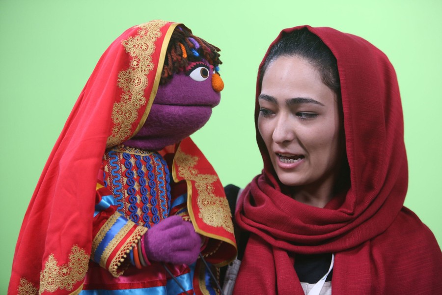 Read moreThe Afghan puppeteer Mansoora Shirzad, right, records a segment with Sesame Street's new character, a 6-year-old Afghan girl called Zari, during a recording session for her first appearance on the local production of the show in Kabul, Afghanistan, on April 6, 2016. #