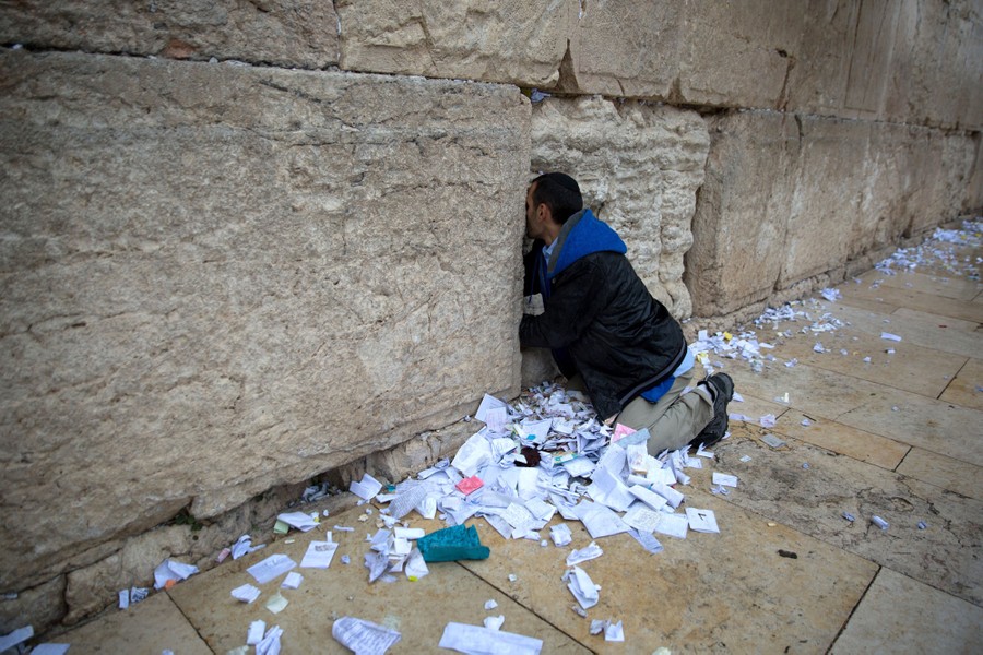 Read moreA Western Wall employee removes messages and prayers, written on pieces of paper by thousands of people “addressed to God,” from the cracks of the Jewish holy site in Jerusalem's Old City on April 12, 2016, in preparation for the upcoming Jewish Passover holiday. All the notes will be buried in a special place at a cemetery. #