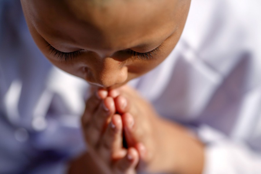 Read moreA novice nun prays before receiving food from people during the Songkran festival at the Sathira-Dhammasathan Buddhist meditation center in Bangkok, Thailand, on April 13, 2016. #