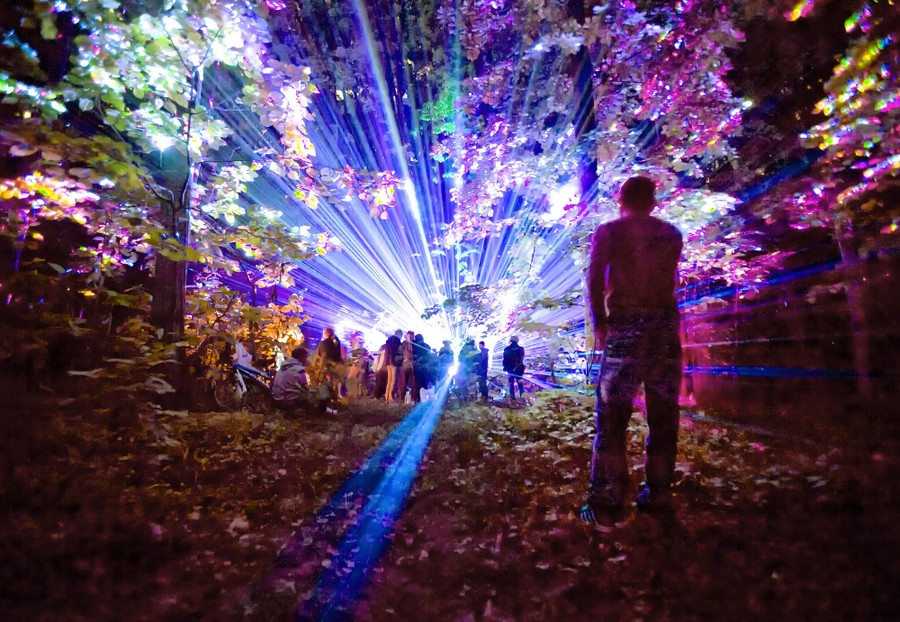 Read moreA man watches from a distance as youngsters dance during a music and laser show, in a forest outside Bucharest, Romania, on May 21, 2016. People attended in large numbers to see a display of laser lighting and music that lasted until the morning hours. #
