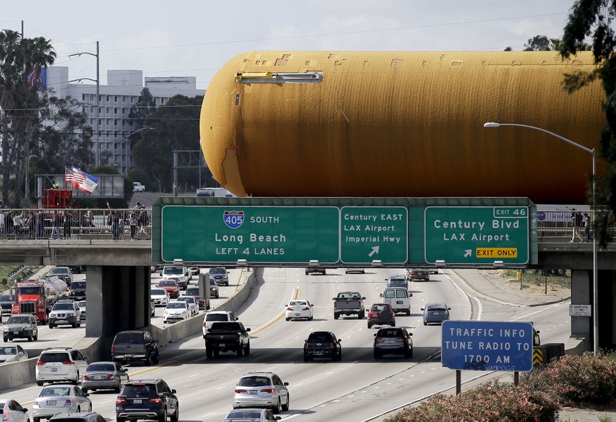 Read moreThe last remaining space shuttle external propellant tank is moved across the 405 freeway in Los Angeles on May 21, 2016. The ET-94 will be displayed with the retired space shuttle Endeavour at the California Science Center. #