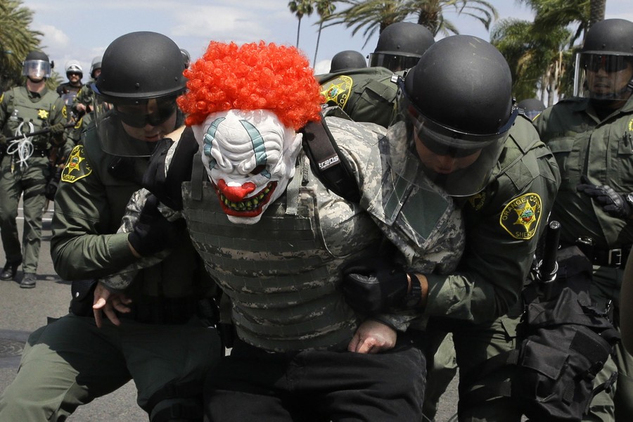 Read moreOrange County Sheriff's deputies take a protester into custody near the Anaheim Convention Center on Wednesday, May 25, 2016, in Anaheim, California, after Republican presidential candidate Donald Trump held a rally at the convention center. #