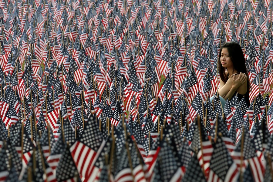 Read moreA woman sits at the edge of the field of United States flags displayed by the Massachusetts Military Heroes Fund on the Boston Common in Boston, Massachusetts, on May 26, 2016, ahead of the Memorial Day holiday on May 30. The 37,000 U.S. flags are planted in memory of every fallen Massachusetts service member from the Revolutionary War to the present. #