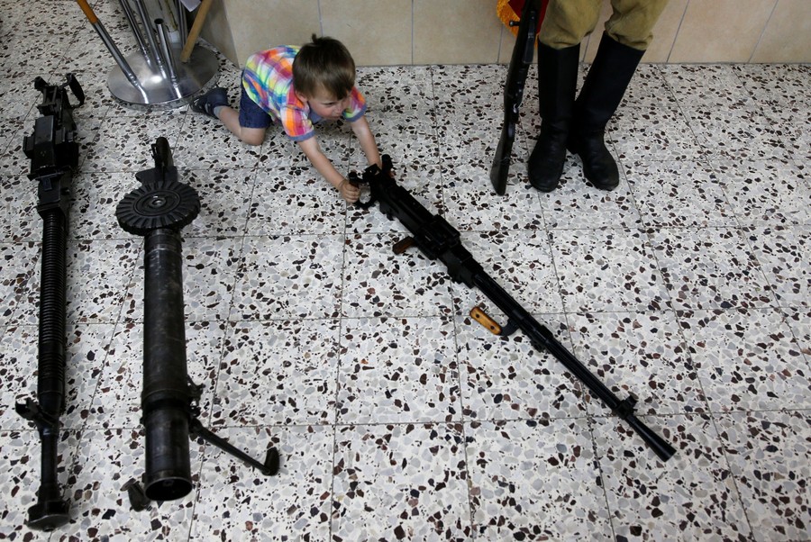 Read moreA boy plays with a machine gun during an event in remembrance of the upcoming Victory Day, marking the anniversary of the Allied victory over Nazi Germany, in the southern city of Ashdod, Israel, on May 7, 2016. #