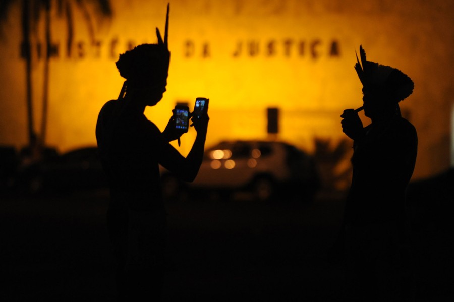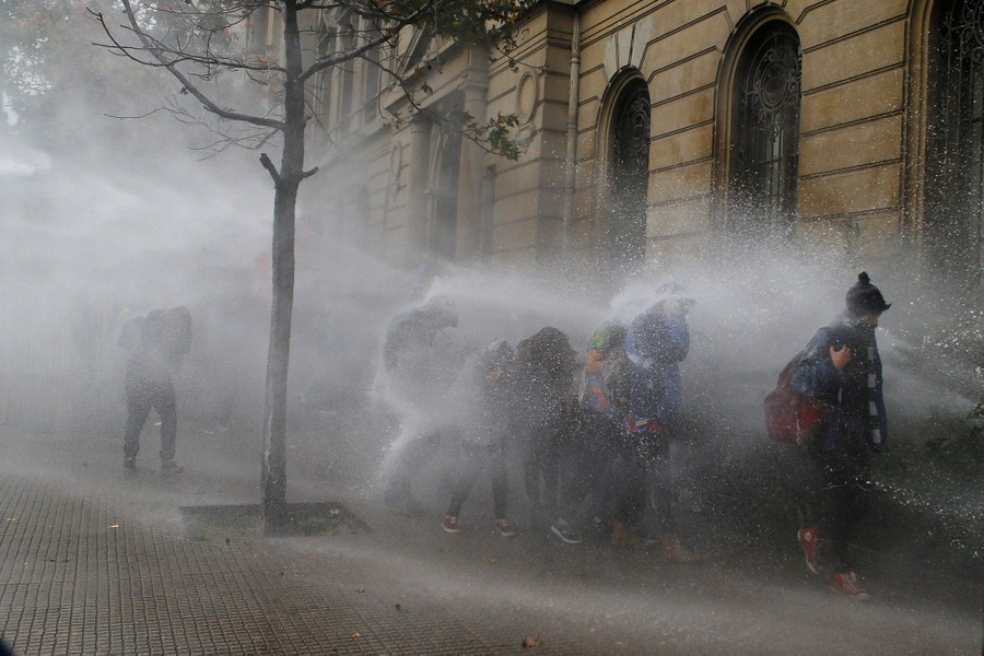 Scenes from North Korea, protests in Chile, Brazil and Venezuela, Victory Day in Moscow, pigeons rigged with LED lights leave trails in the night sky, Hindu rituals performed in honor of Donald Trump in India, a kitten given to Julian Assange, a huge tire fire in Spain, and much more.