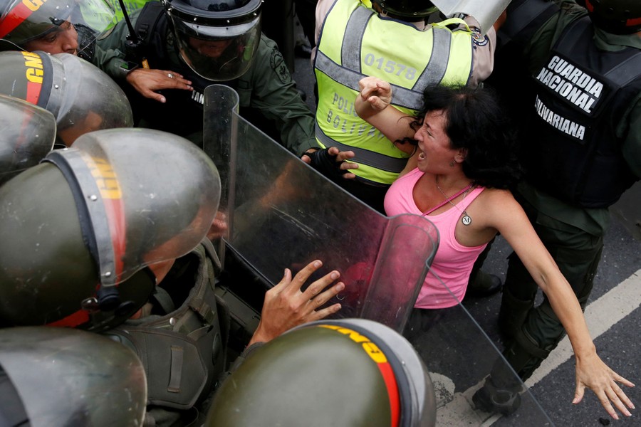 Read moreAn opposition supporter falls as she clashes with Venezuelan National Guards during a rally to demand a referendum to remove President Nicolas Maduro in Caracas, Venezuela, on May 11, 2016. #