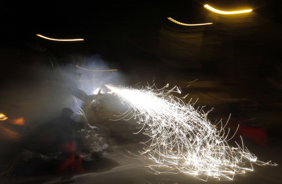 Read moreA reveler takes part in Correfoc in Barcelona, Spain, on May 7, 2016. Correfoc, or fire-run, originates from a form of medieval street theater that represents the fight of good against evil through parades using fireworks and effigies of the devil. During the Correfoc, a group of individuals dress as devils and light fireworks. While dancing to the drums, they will set off their fireworks among crowds of spectators. #