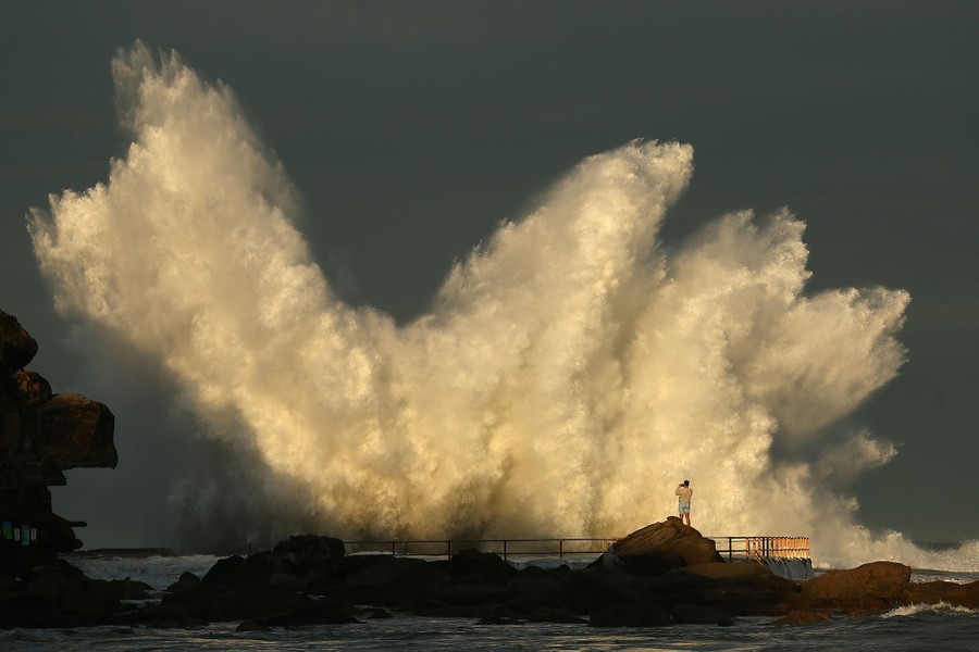 Read moreA man watches a wave hit a rock pool at Curl Curl beach as large swell hits the east coast of Australia on June 6, 2016, in Sydney, Australia. Torrential rain over the weekend saw streets and homes flooded while wind gusts up to 120 kilometers per hour brought down trees and power lines. #