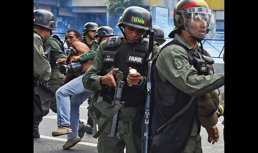 Read moreRiot police fire rubber bullets and tear gas grenades at students from the public Central University of Venezuela who demonstrated for a referendum to remove President Nicolas Maduro in Caracas, on June 9, 2016. #