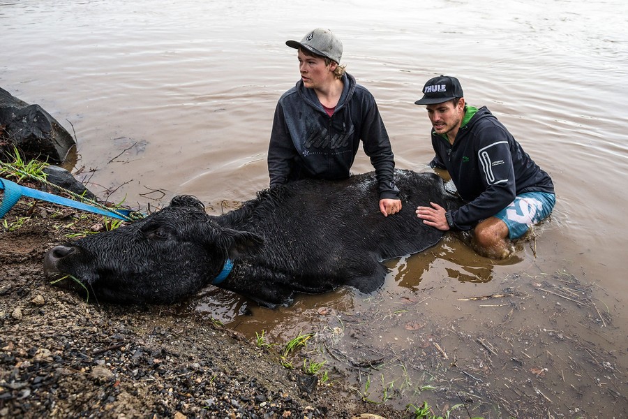 Read moreVolunteers help rescue surviving cows and bulls which were washed downriver after the Mersey River flooded on June 6, 2016, in Devonport, Australia. A flood watch is in place for all Tasmanian river basins after parts of the state received rainfall in excess of 200 millimeters (7.9 inches). #