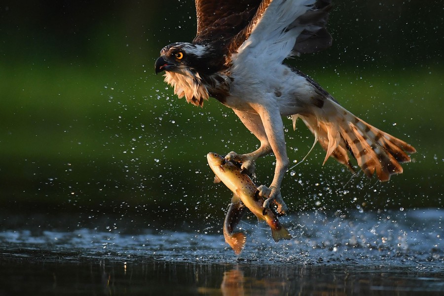 Read moreAn osprey catches two rainbow trout at Rothiemurchus on June 6, 2016 in Kincraig, Scotland. Ospreys migrate each spring from Africa and nest in tall pine trees around the Aviemore area, the raptor was hunted to the point of extinction in the Victorian era, their migratory habits eventually brought them back to Scotland with the first successful breeding pair being recorded in 1954. #
