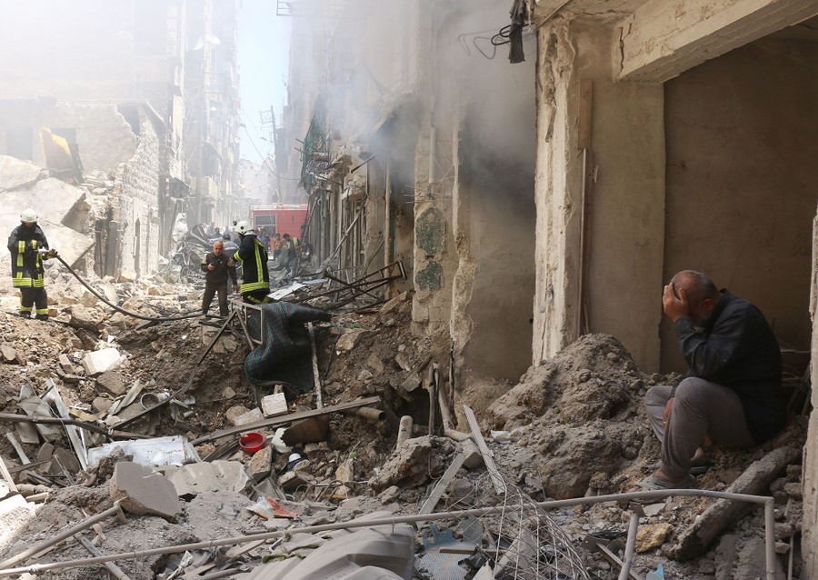 Read moreA man sits in the rubble of a destroyed building following reported air strikes by Syrian government forces in the rebel-held Shaar neighborhood of the northern city Aleppo on June 8, 2016. Syrian government air strikes on rebel-held neighborhoods of the divided second city Aleppo killed at least 15 civilians, the Syrian Observatory for Human Rights said. #