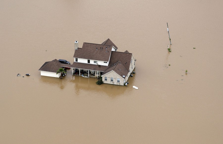 Read moreA home surrounded by floodwaters, seen from above, on June 4, 2016, in Rosharon, Texas. Parts of Texas have been inundated with rain in the last week, and more than half of the state has been under flood watches or warnings. #