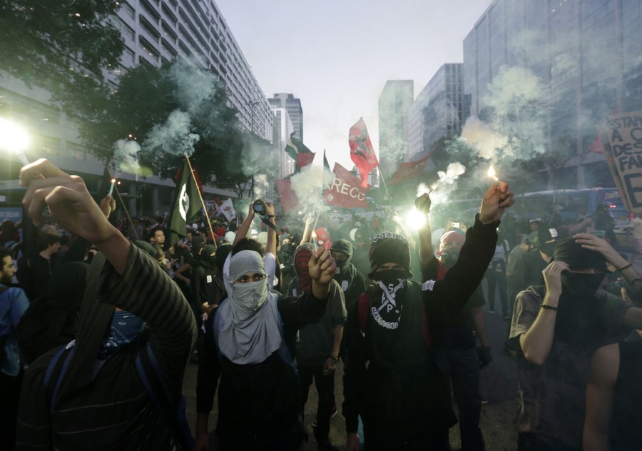 Read moreStudents wearing masks burn flares during a protest demanding better education and protesting the money spent on the Olympics in Rio de Janeiro, Brazil, July 6, 2016. With the Olympics set to start on August 5, the games and the city have been overshadowed by security threats, violence, the Zika virus, and a national political corruption scandal. #