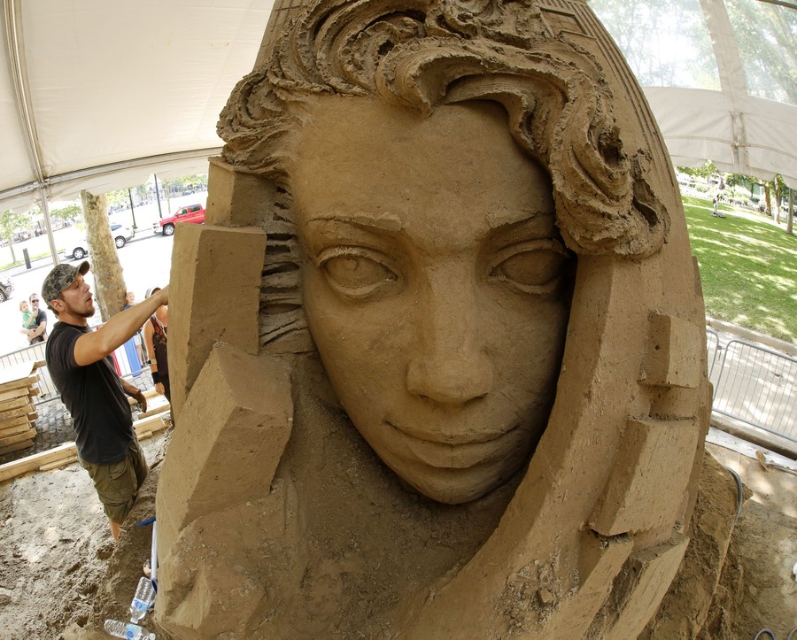 Read moreIIya Filimontsev of Moscow, Russia, left, works on a sand sculpture as part of the International Master Sandcastle Championship held in the Oakland section of Pittsburgh, July 5, 2016. #