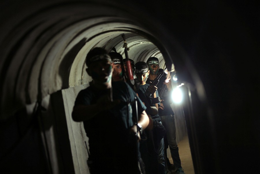 Read moreYoung Palestinians holding weapons walk in a tunnel during a military exercise graduation ceremony at a summer camp organised by Hamas's armed wing, east of Gaza City, on July 22, 2016. #