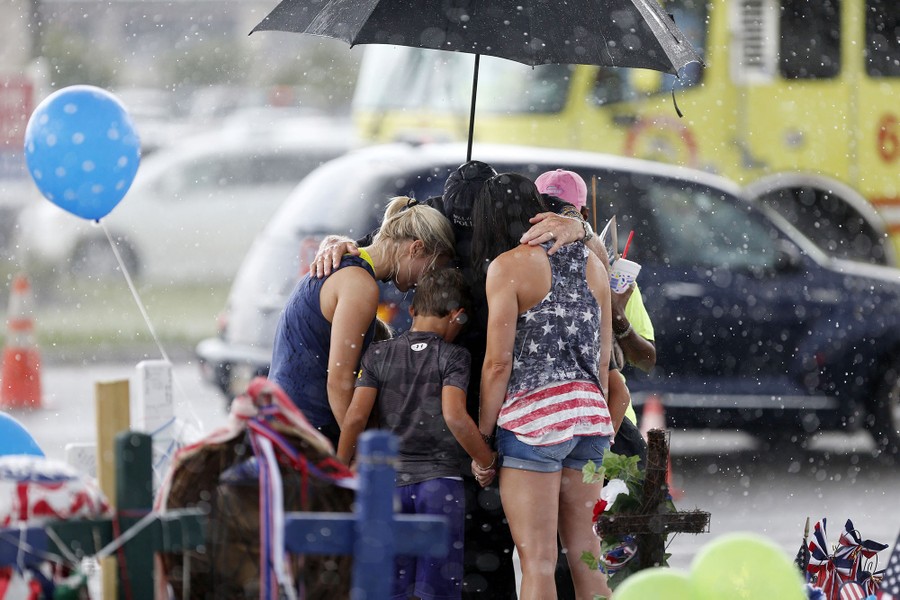 Read moreWell-wishers pay their respects in the rain at a makeshift memorial, at the scene where several police and a sheriff deputy were killed in Baton Rouge, Louisiana, on July 23, 2016. Funeral services were being conducted for East Baton Rouge Sheriff deputy Brad Garafola. #