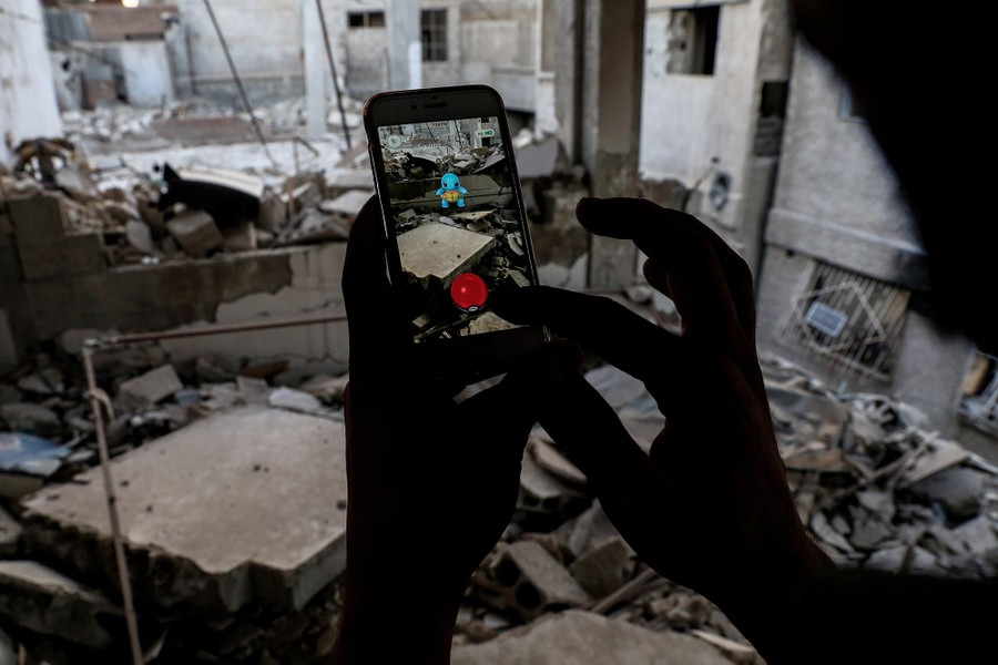 Read moreA Syrian gamer uses the Pokemon Go app on his mobile phone to catch a Pokemon amid the rubble in the besieged rebel-controlled town of Douma, a flashpoint east of the capital Damascus, on July 23, 2016. #