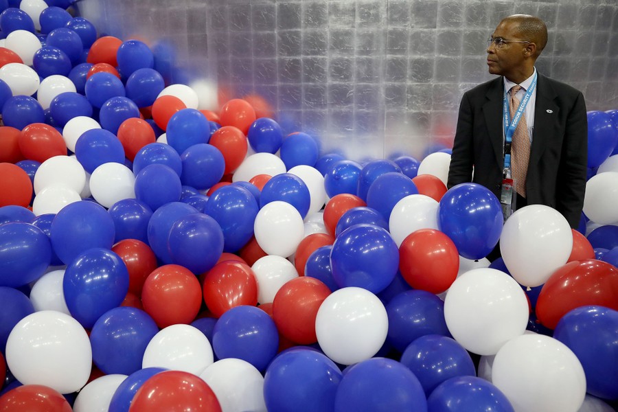 Read moreAn attendee stands among balloons at the end of the fourth day of the Democratic National Convention at the Wells Fargo Center in Philadelphia, Pennsylvania, on July 28, 2016. #