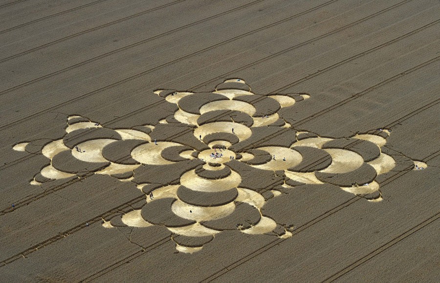 Read moreSightseers visit a crop circle in a cornfield, not far from the small community of Mammendorf near Munich, Germany, on August 3, 2016. The crop circle has a diameter of 180 meters. The owner of the grain field is a farmer from the nearby village Mammendorf, and says he does not know how the crop circle came to be in his field. #