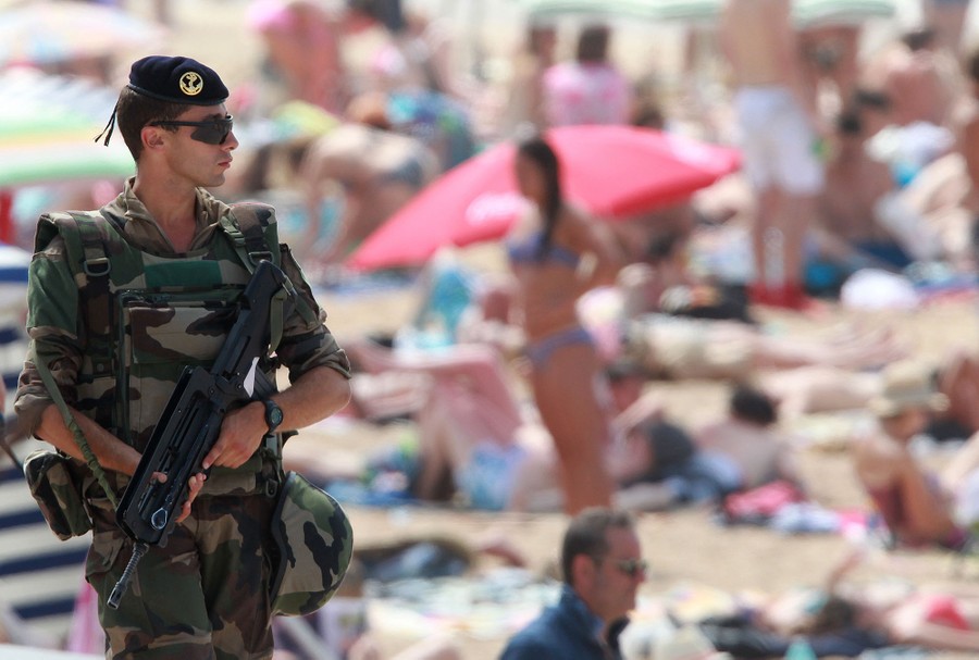 Read moreA French soldier patrols near the Biarritz's beach, France, on July 30, 2016. The challenge of protecting churches, synagogues, tourist haunts, beaches, summer festival sites, airports and train stations is among the most daunting tasks security forces have faced in recent times in France, and Europe. #