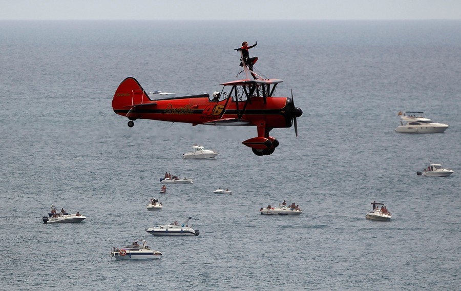 Read moreBritish wing-walker Danielle Hughes from 46 aviation group performs acrobatics on a Stearman biplane over a beach during an airshow in Torre del Mar, Spain, on July 31, 2016. #