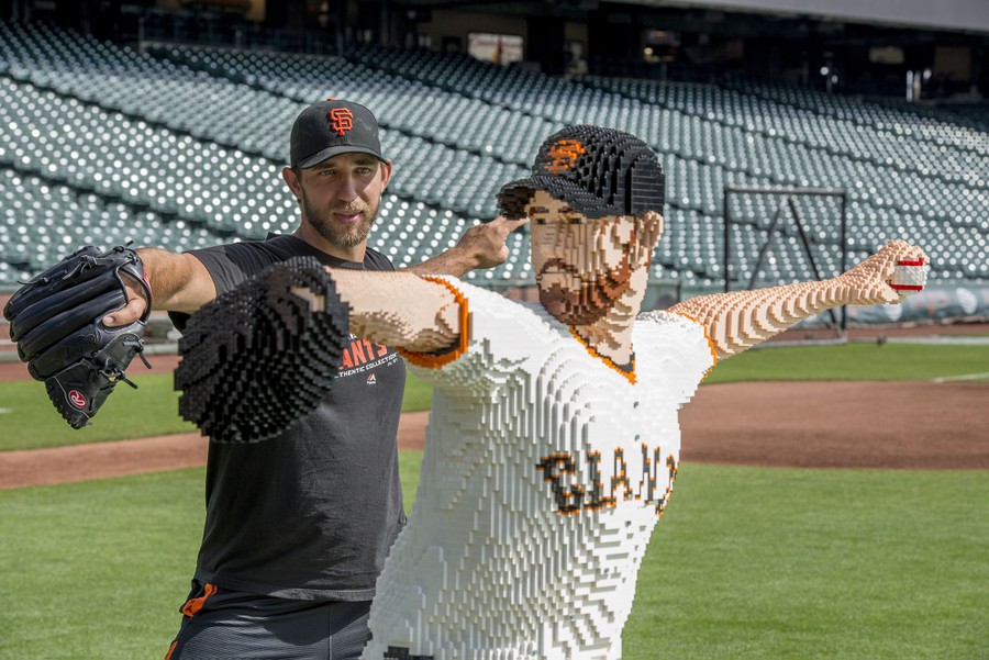 Read moreSan Francisco Giants pitcher Madison Bumgarner checks out his life-size LEGO likeness at the mound before the game at AT&T Park in San Francisco, on July 30, 2016. Made from more than 36,000 bricks, the model took LEGO Master Builders 300 hours to design and build. #