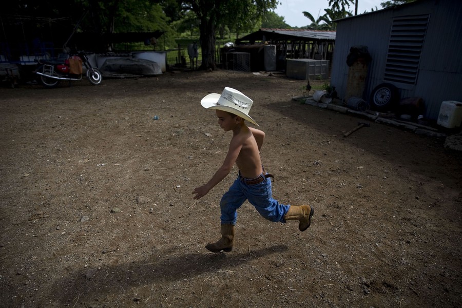 Read more5-year-old cowboy David Obregon runs across the yard of his parents farm in Sancti Spiritus, central Cuba. In the Cuban countryside, on July 29, 2016. Many children here learn to ride a horse before they learn to ride a bicycle. Those who grow up to be the best start farm- and ranch-related studies at local universities without passing the difficult national entrance exam. #