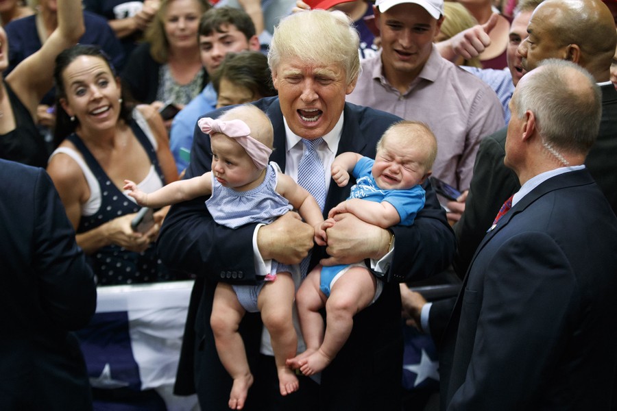 Read moreRepublican presidential candidate Donald Trump holds Kellen Campbell of Denver, right, and Evelyn Keane, of Castle Rock, Colorado, during a campaign rally in Colorado Springs, Colorado, on July 29, 2016. #