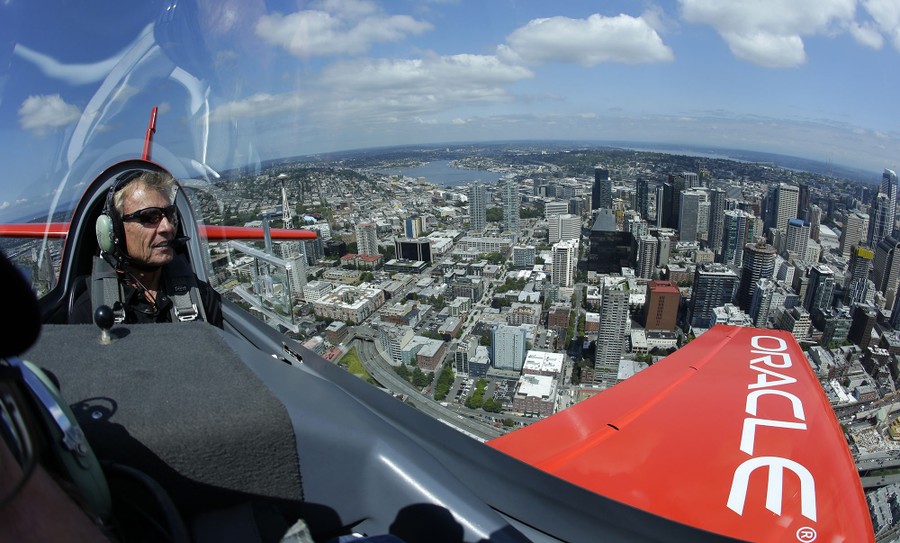 Read moreAerobatic pilot Sean D. Tucker flies his Team Oracle Extra 300L airplane over Seattle on August 3, 2016. Tucker was preparing for the upcoming annual Seafair Air Show which will take place August 5-7 over Lake Washington in Seattle. #
