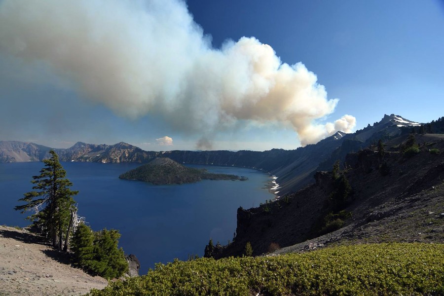 Read moreThis photo provided by Inciweb.gov, shows smoke from Bybee Creek Wildfire drifting over Crater Lake, Oregon, on July 30, 2016. The wildfire burning west of Crater Lake National Park has grown to more than 400 acres as of Tuesday, and the park remains open, but fire officials say West Rim Drive could be intermittently closed over the next couple of days. #