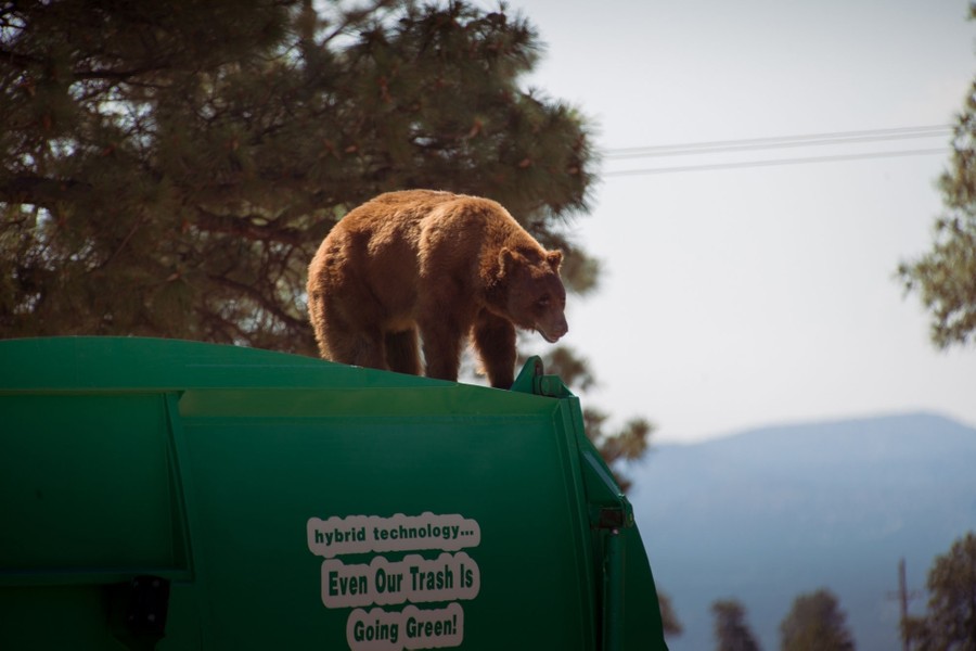 Read moreA bear hitches a ride on top of a garbage truck in Los Alamos National Labs in Los Alamos, New Mexico, on July 18, 2016. Helicopter mechanic Evan Welsch, who snapped photos of the bear, said about 30 Forest Service and National Park workers had gathered around to see the spectacle when it was suggested that the driver back up near a tree to give the animal an escape route. The bear clambered up a tree and stayed up there about an hour or two before scurrying down and running off. #